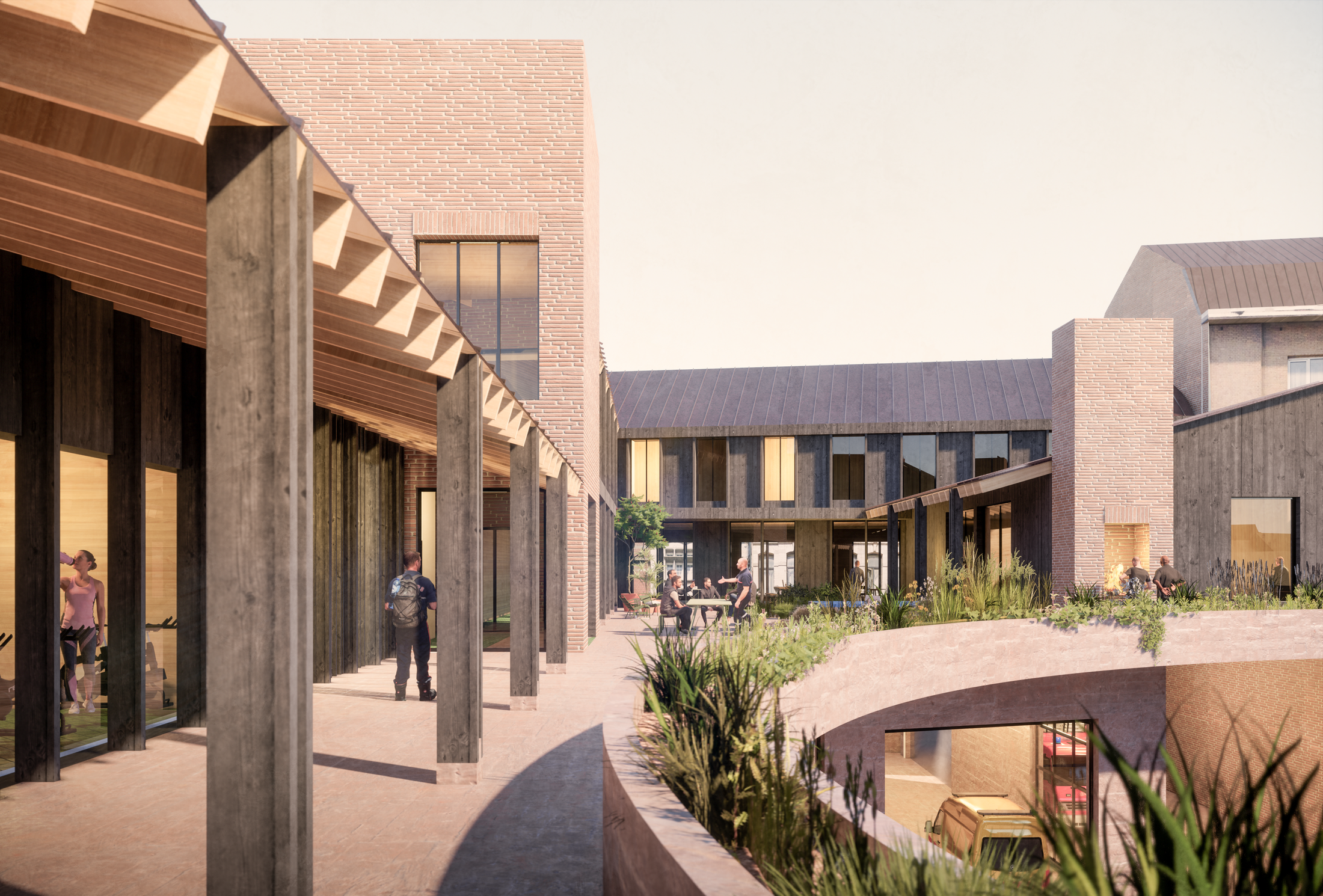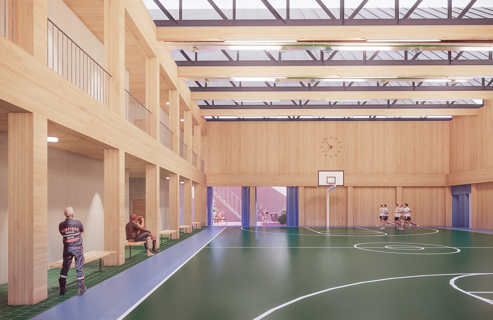 In addition to the fire station, a sports complex will be built and made available to local residents. Managed by the Municipality of Anderlecht, it will include a large multi-sport hall shared between firefighters and the community, as well as two rooms dedicated to gentle sports, yoga, and martial arts. This openness to the neighbourhood and shared use of facilities is what makes the project unique.