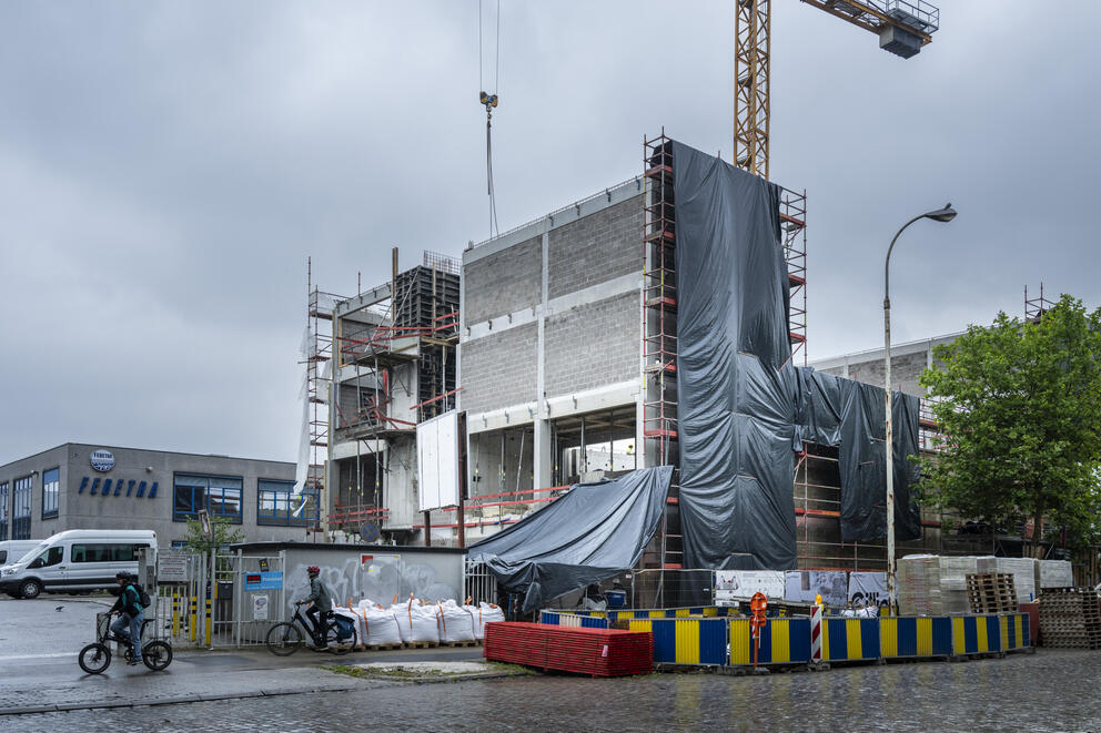 As part of the Urban Renewal Contract No. 1 "Citroën – Vergote", the Urban Development Corporation (SAU-MSI) has been appointed as the contracting authority for the construction of the new concert hall of Magasin 4, a mythical place of Brussels punk-rock culture.