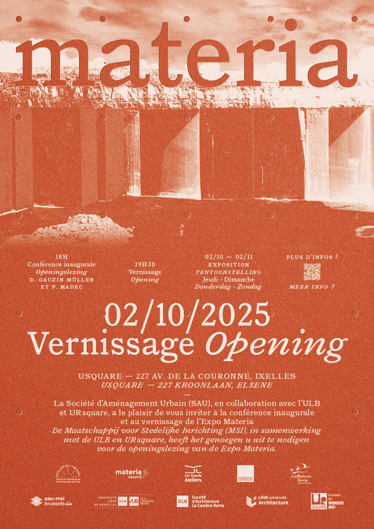 We are pleased to invite you to the inaugural session and opening of the Materia Exhibition, organized by the SAU in collaboration with ULB and UR Square.