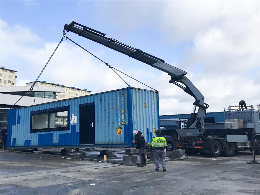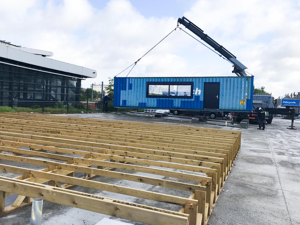 The containers that will host various local organisations’ activities have been put in place on the land owned by the Region just next to the Gare de l’Ouest railway station, which the SAU started developing in early March.