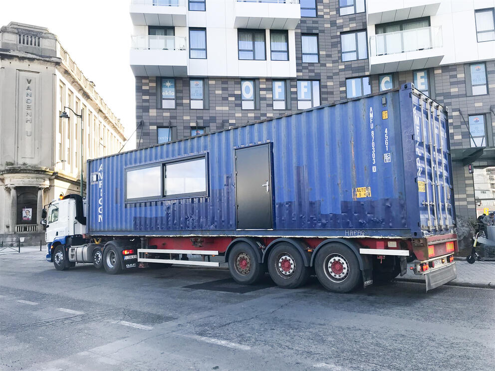 The 4,500 m2 site is located at the corner of Chaussée de Ninove and Rue Alphonse Vandenpeereboom. The Region is currently working out how it will be used permanently in the future. Meanwhile, for a period currently planned to last three years, the SAU and the municipality of Molenbeek have cooperated to make a temporary occupation project possible there. The aim is to provide a response to the needs of the local area surrounding this key public transport hub. It has been decided to create temporary spaces where locally active non-profit organisations can carry out their activities, on the basis of the ‘Autour du Parc de l'Ouest’ Sustainable District Contract programme and the diagnosis of the ‘Gare de l'Ouest’ Urban Regeneration Contract (CRU 3).