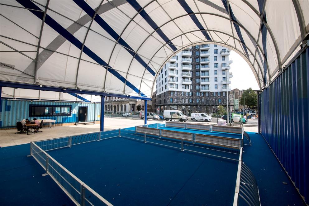 Covered areas for sports activities, containers for fun and creative activities for young people run by local organisations, a fablab accessible to local residents and a new municipal office for the district: these are the main components of MolenWest - Square. This new temporary occupation of 2,800 m² of space, initiated by the Urban Development Corporation (SAU) and the municipality of Molenbeek, was launched by the municipal authorities and the SAU’s director, Gilles Delforge, early in the evening on Wednesday 16 September.