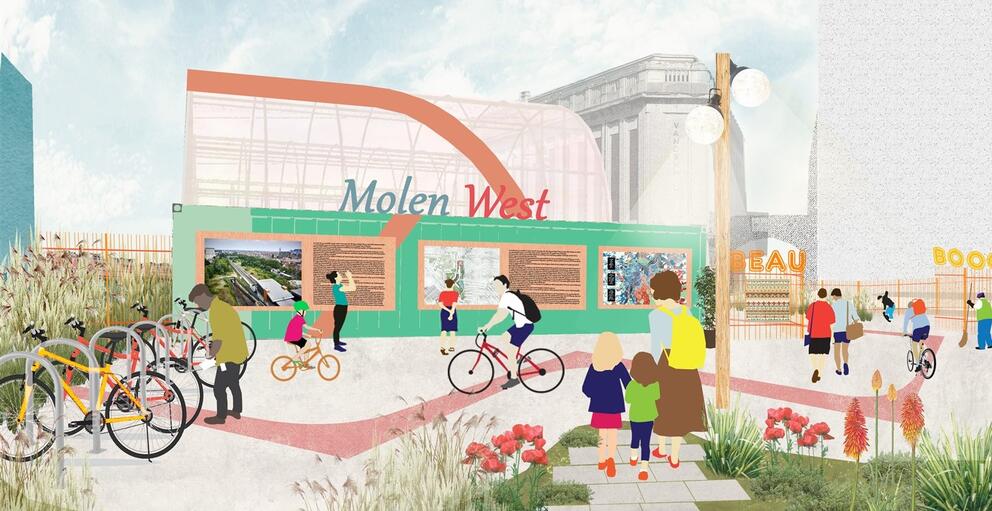 It will be recalled that the MolenWest project involves the creation of spaces for sports activities, containers converted for fun and creative activities run by local organisations for youngsters and a fablab accessible to local residents. This new temporary occupation, initiated by the SAU and the municipality of Molenbeek, will take place on a site owned by the Region, on the edge of brownfield railway land belonging to SNCB and Infrabel.