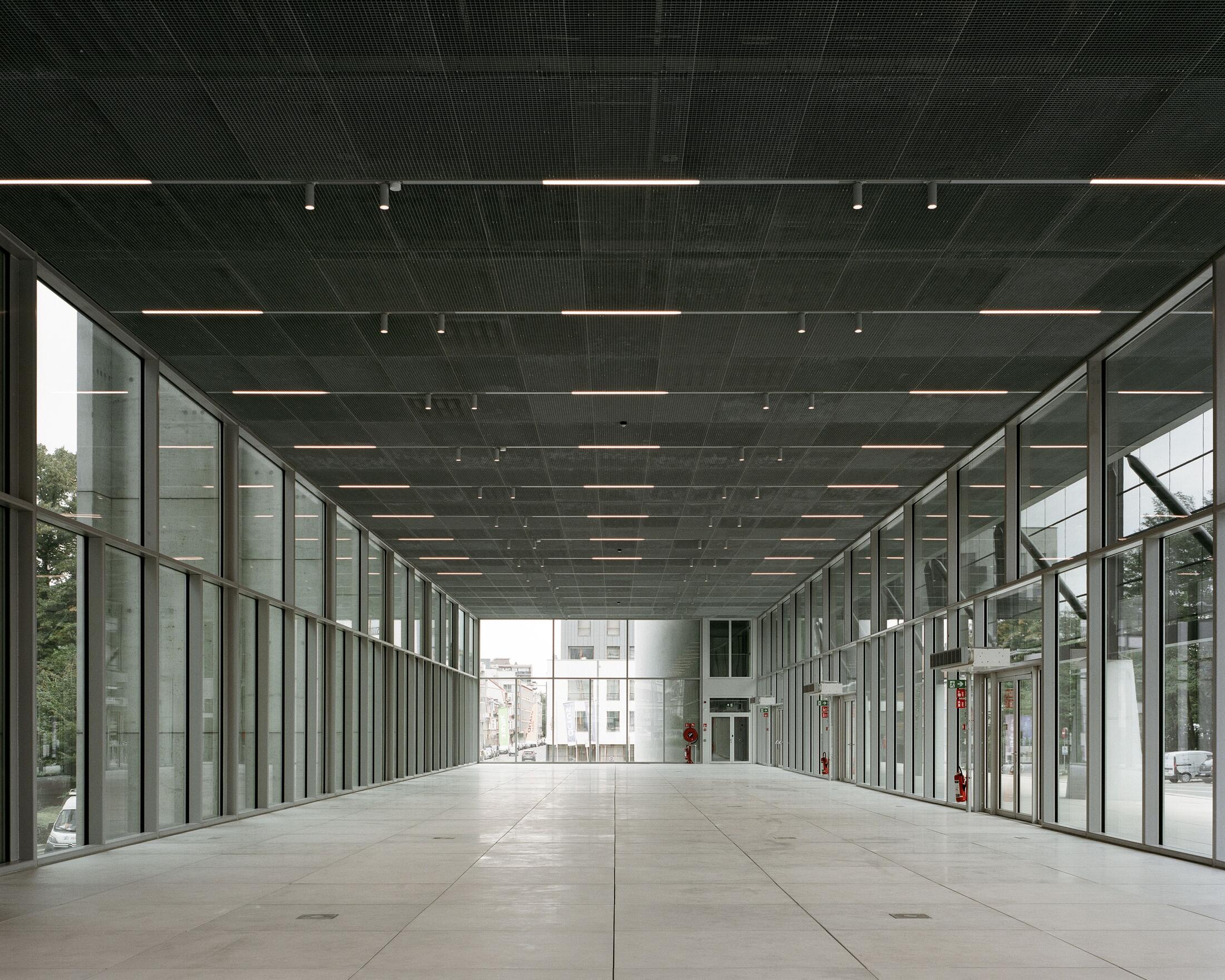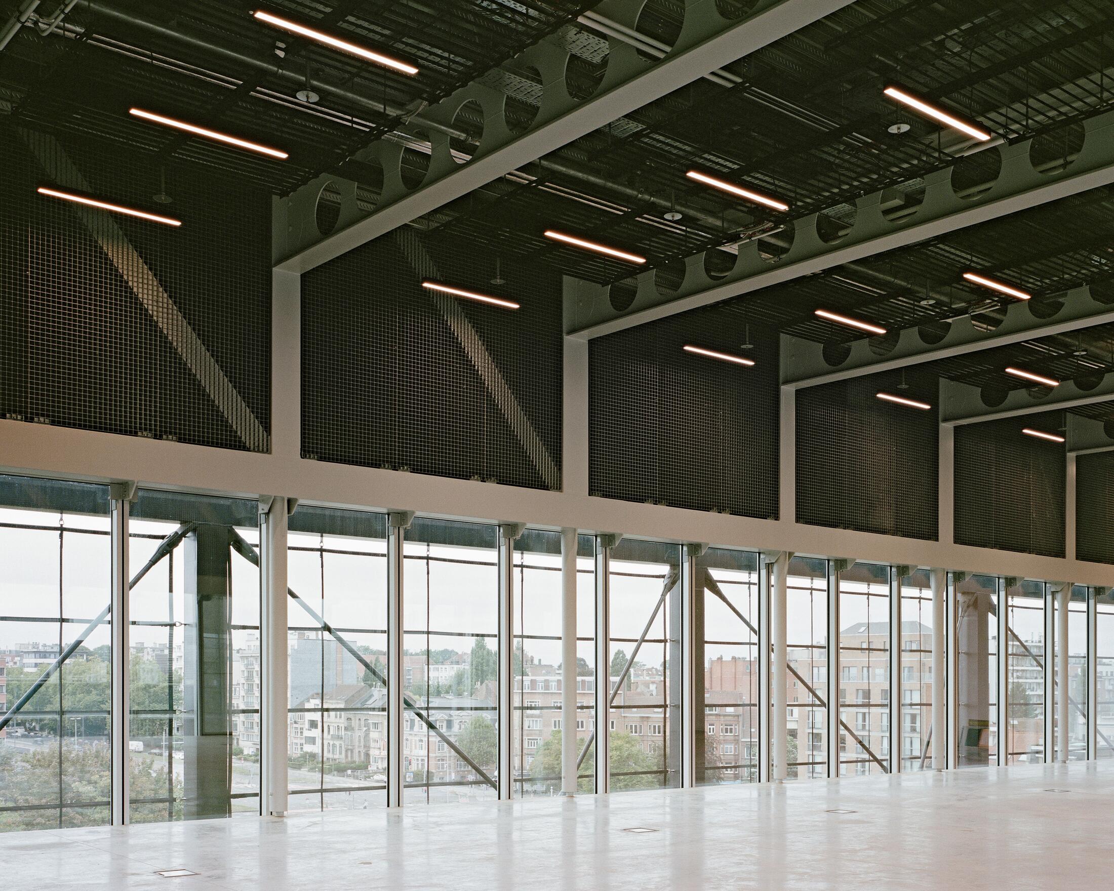 - Aesthetic and functional design: technical elements are integrated into the architectural design and visible, notably in the ceilings, presenting a "finished shell";